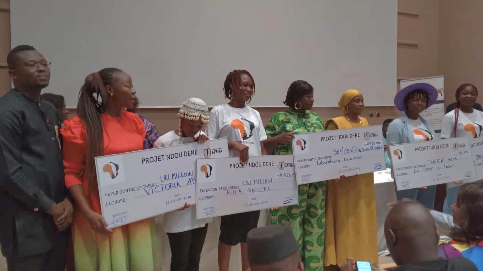5 jeunes femmes parmi les 20 ayant bénéficié une formation et porteuses de projets ont été primées ce 15 mai 2024, leurs chèques sont de 1 500 000 pour celle qui occupe la première place et 500.000 francs CFA pour la cinquième place. C’est à l’initiative de l’association Femme Aussi (AFEMA) à travers son projet “Ndou Dené” qui veut dire la voix de la femme.