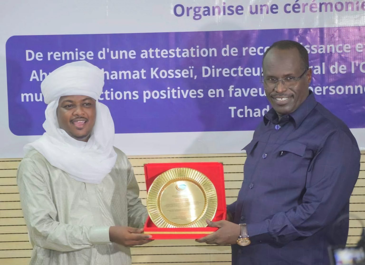 L’Association Humanitaire Al-Moussa’Ada a décernéce mardi 2 juillet 2024, au Musée National une attestation de reconnaissance et d’honneur à M. Ahmat Mahamat Kosseï, directeur général de l’Office National de Sécurité Alimentaire (ONASA), pour ses multiples actions positives en faveur des personnes vulnérables.