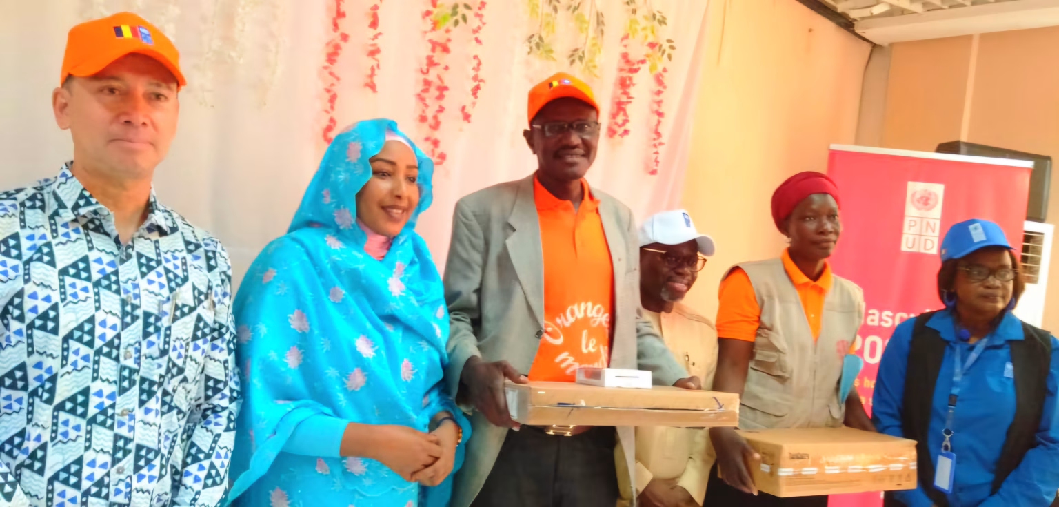 Dans le cadre de la Semaine Nationale de la Femme Tchadienne (SENAFET) édition 2025, des matériels informatiques composés de 5 imprimantes moyen format, 17 ordinateurs fixes, 11 portables, de multiples prises, des stabilisateurs, des rallonges, des enregistreurs et autres accessoires informatiques ont été remis ce jeudi 6 mars 2025 par le Programme des Nations Unies pour le Développement (PNUD) à la Maison Nationale de la Femme.