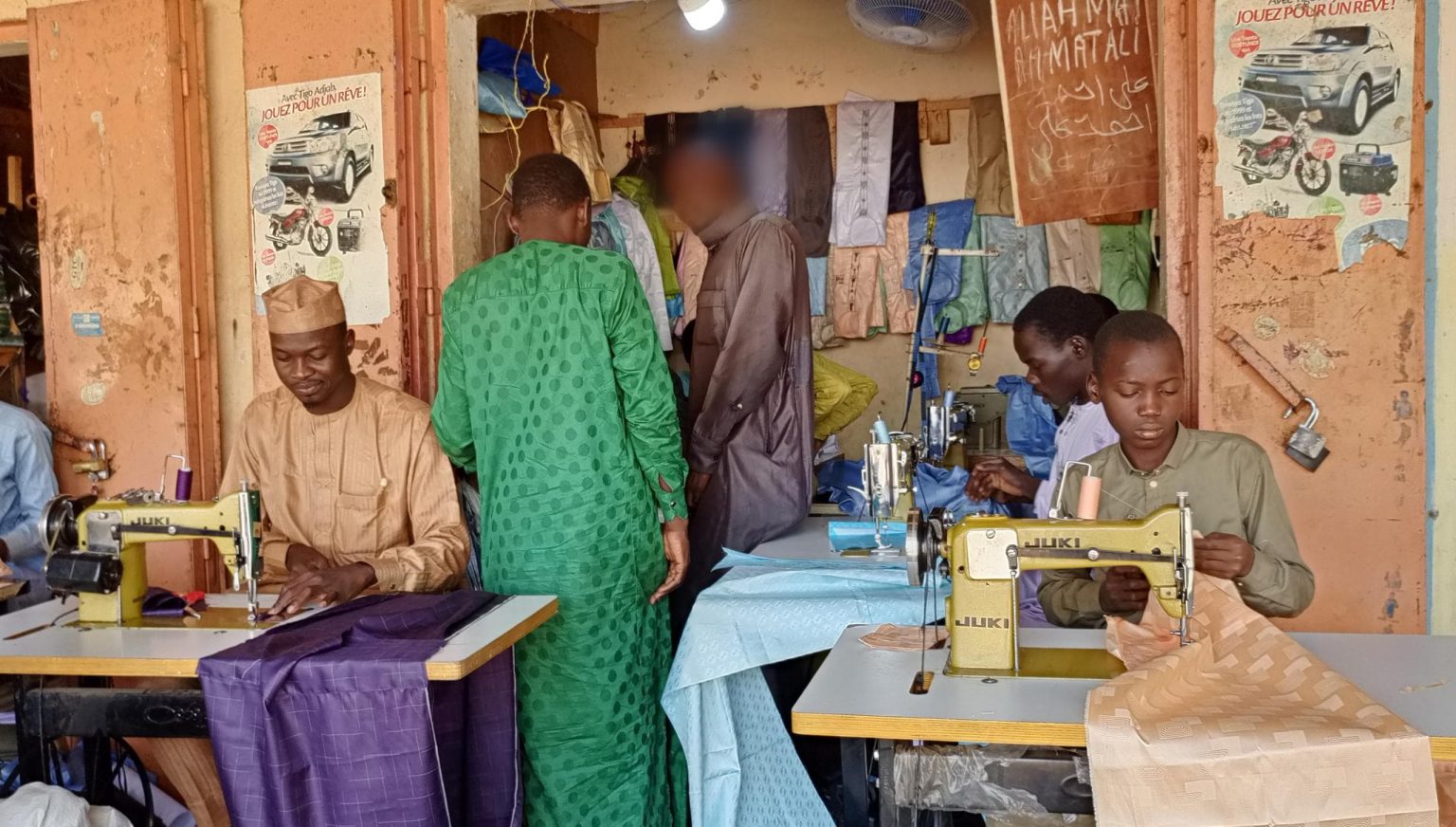 Dans les ateliers, le bruit des groupes électrogènes et des machines à coudre se mêle aux voix des clients impatients. Les couturiers assurent qu’ils feront de leur mieux pour livrer tous les habits à temps. Mais les coupures intempestives d’électricité ralentissent leur travail.